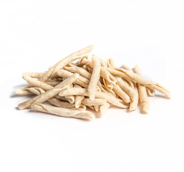 Ingredienti: Semola di grano duro 87,5%, acqua 12,5%.Prodotto realizzato con principi di realizzazione artigianale, trafilati al bronzo, con una semola di alta qualità ed un essicazione lenta 40°, umidità 12.5%